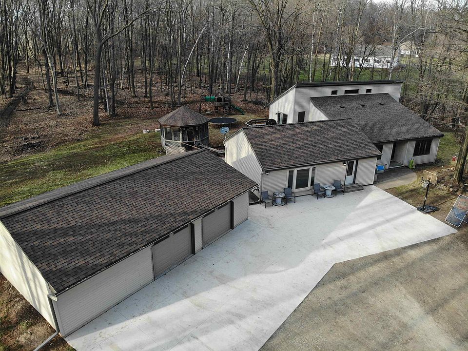 Unique opportunity awaits! This home is nestled back in the woods for privacy! Appealing Country feel comes over you as you enter into this home. Beautiful wood floors, Vaulted ceilings w/ impressive wood beams. Great room offers a gas fireplace. Huge 2nd Great room room with a pellet stove and views of the serene back yard. 4 bedrooms/ 2 full baths. Newer cement driveway area. 1.68 Acre wooded lot (per assessors office) 24x40 garage dimensions. Newer roof and furnace. Country kitchen and dining room with full appliance package. Showings start on 4/11/24 Any and all offers will be presented on April 17th.
