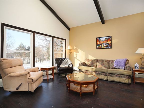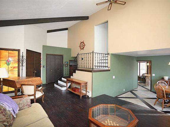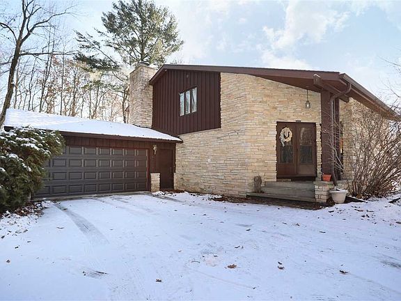Country setting just minutes from town! Nestled down a dead-end road is where you'll find this home on a partially wooded 1+/- acre lot. Step in the open foyer to the living room boasting hardwood floors, vaulted beamed ceiling and large windows. Eat-in kitchen with snack bar and patio doors leading to the deck. Adjacent formal dining room is sure to please. Off the kitchen is the family room featuring a wood burning fireplace. Convenient half bath finishes off the main level. Open staircase leads you to three large bedrooms and full bath. Attached 2.5 car garage is an added bonus.