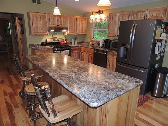 4 bed 2 bath extensively remodeled home just 2 miles outside of town situated on a private 2.8 acre lot. This home is like new with beautiful hardwood flooring with open concept main floor, custom built kitchen cabinets with slow close drawers, and vaulted ceilings. Covered deck off kitchen for easy grillin! Finished lower level includes 2 bedrooms, full bath and a rec room area which walks out to the beautiful stamped concrete patio. Attached 2 car garage and detached 2 story storage building. You have to come see this updated home! MOTIVATED SELLERS!