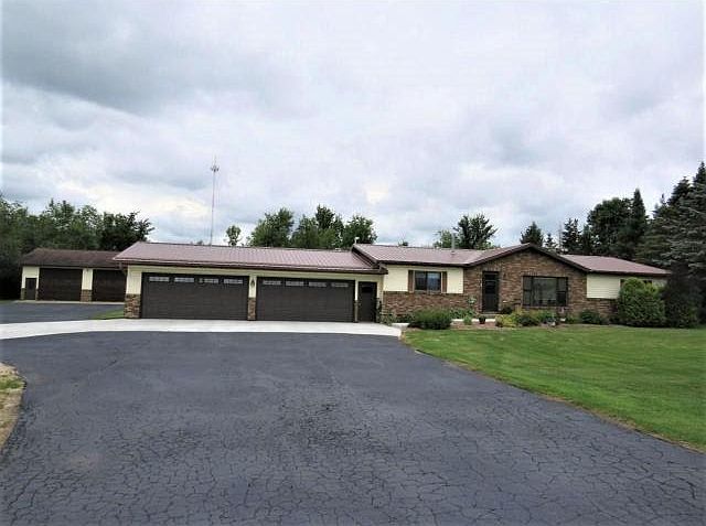 Every mans dream property! This 3 bed/2 bath home has many features that are attractive to the whole family. Starting with the attached 4 car garage, and large workshop that is insulated, & heated w/ in floor heat & a wall unit for backup, 4 overhead doors, and an extra 2 car detached garage as well. Brand new cement apron recently poured and blacktop driveway has been sealed. Step inside and you will admire the updated kitchen ('12) w/ new patio door that overlooks beautifully landscaped yard and octagon deck. Large living room with gas fireplace, and 3 large bedrooms, including a master suite that has updated bathroom, office that can be converted to be main floor laundry, and a newly remodeled 2nd bathroom ('20) finish off main level. Basement has large rec room with bar, den, and tons of extra storage. Water heater and tank brand new, Boiler in shop is 2 yrs old, & metal roof on house 6 yrs old. Several other updates, as well. Call today to view!