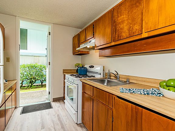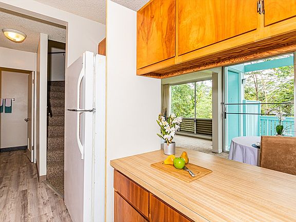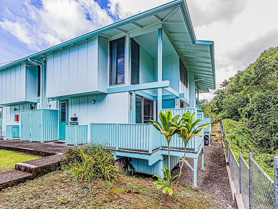 MOVE IN READY! Located streamfront, this bright and airy townhome features a generous living room, dining, kitchen, laundry and half bath and streamside composite lanai on the first floor and three breezy bedrooms and a full bath upstairs. A pretty court yard area adds private out door living. Imagine listening to the year round stream while relaxing with your morning coffee or an afternoon glass of wine. With new vinyl floors, the kitchen has EZ access from the assigned parking space. A large great room is also accessible to the kitchen, dining and lanai. A powder room is tucked just past a interior laundry space. The upper bedrooms and lower living spaces have well-maintained berber. A family friendly upper bath has a 2 compartment vanity that can be used independently from the tub and toilet. With ocean glimpses, the unit enjoys nice breezes off the beautiful Pacific. Three bedroom units are a premium in the East Hawaii market making the walking distance to schools, Hilo Public Library, Downtown Post Office and even Hilo Hospital a real plus. This perimeter unit location sits high and insures privacy.... no neighbors looking into your unit. All-in-all, it's move-in ready at an affordable price. (Maintenance fees include sewer, trash, water, gas, common area maintenance, resident manager, annual pest control, building was recently painted).