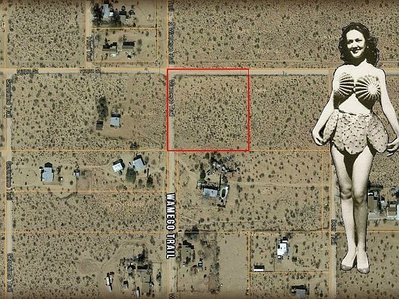 This corner 2.5 acres is in the Flamingo Heights area of Yucca Valley. Bighorn Water Basin has told us that there is water piped along both Wamego Trail and Napa Street (Please confirm with the 760-364-2315). Easy skip and a jump to downtown Yucca Valley. Beautiful perched view of Goat Mountain in the distance. -------------------------------------------------------------------------------------------- To purchase this property on terms from DesertLand, we require a Down Payment of $3300 and a Flat Rate Escrow Fee of $492. So your total start-up cost for the property on Wamego Trail is $3792. You can then choose a loan that best fits your budget: 5-year loan ($271 a month), 10-year loan ($164 a month), or a 15-year loan ($130 a month). We conduct a traditional escrow with title insurance. We do not require a credit check. Do not have the down payment? Look into our Down Payment Program. On that program, it is only $366.00 to start owning this land on Wamego Trail today. More information can be found on our website.