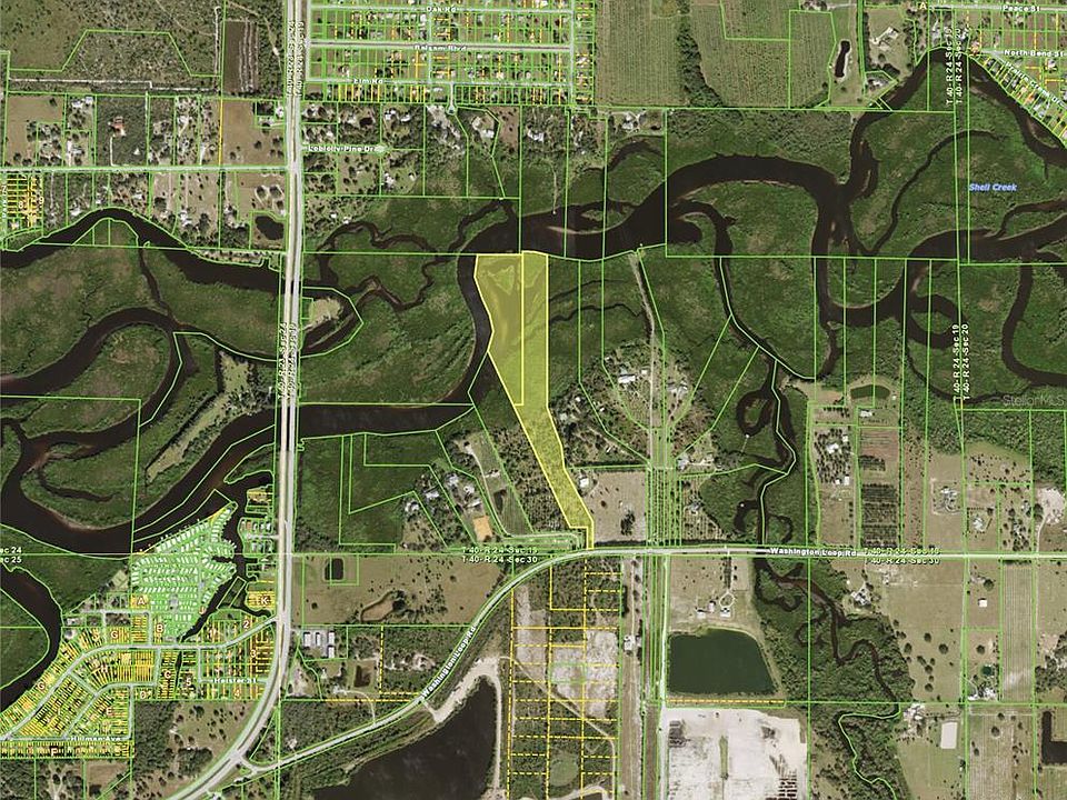 Beautiful Wooded 5 Acre +/- Home Site Located on Shell Creek, the Additional 18 Acres are submerged Land in Shell Creek. City Water available. Owners has access to a Community Boat Ramp on Shell Creek,