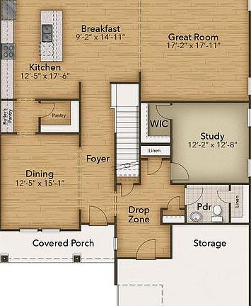 The Wisteria has plenty of downstairs living with wide-open gathering space for family meals or game night. The spacious side-load two-car garage provides beautiful curb appeal and bountiful storage space. On the first floor, a dining room is off the foyer and butler's pantry leading into the open kitchen and breakfast area. The Great Room has plenty of windows and opens into a covered rear porch for enjoying those relaxing evenings or South Carolina sunsets. There is also a study and conveniently located powder room that offers a secluded space perfect for a home office. The second floor features an enormous Owner's suite and Bath. Add an optional Bonus Room or a Deluxe Owner's bath for more of a luxurious oasis. The second and third bedrooms, along with a full bathroom and laundry room complete the second-floor living space. The over garage storage is a major plus for this floorplan. There are so many additional options that can enhance this already stunning floorplan.