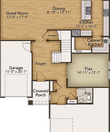 Inspired by the natural beauty of the surrounding area, the Bayberry offers three bedrooms and two and a half baths with over 2,700 square feet. This two-story model includes a first-floor flex room, enormous catering kitchen, covered porch, loft, and ample storage space. Prepare meals on a large kitchen island with a view of your optional covered porch outside. The dining area offers an easy flow for large dinner parties or holiday gatherings.Beyond the great room, is a flex room with accompanied by a half bath. Upstairs, the owner's bedroom features an enormous walk-in closet accompanied by an indulgent owner's bath with multiple options for a deluxe seated shower or enclosed toilet area. Find a personal sanctuary with plenty of natural light and open space.The second floor also provides a large loft accompanied by two additional bedrooms, a full bath, and a large laundry room alongside for a getaway away from the hustle and bustle of the downstairs area. The Bayberry offers room for the entire household with an array of comforts added throughout!