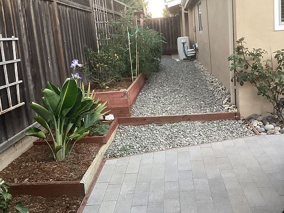 * Quite private yard with large patio BBQ area, garden boxes, paver garden setting. Outdoor shower.