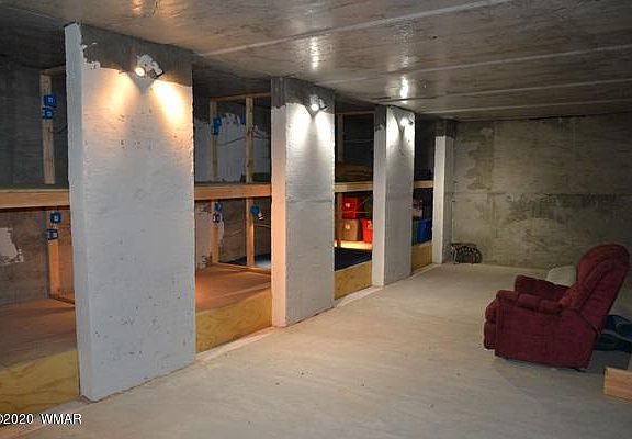 Prepper/Survivalist homestead. If you are looking for a bug out retreat this could be for you! Seller is a contractor and knew what he was doing when he built this 1200 sq ft underground bunker, built with 3/4'' rebar set at 12 x 12 intervals, 8'' thick concrete walls, 8' ceilings. Very sturdy stairs lead down to the bunker, the main living area has built in bunks, 3 rooms were intended to be a master bedroom, kitchen & bathroom/laundry room. A 4' high ventilation tunnel built with concrete & galvanized steel. The bunker has water to it and is partially wired for electricity. Stairs from the ground level lead up to an observation deck. A silo w'shop has a 5' underground concrete storage area. Private well with 6'' casing is drilled to 400', water level at 315'. See additional comments .. Pump will run on 12 volts or 110 volts. The bunker has 10 sky lights located in what could be a raised bed garden area. The lot has access to the White Mountain Lake, and has great views to the South and East. It has a cattle guard at the entrance and is partially fenced. Power is at the lot line, buyer to verify cost to hook up.The owner needs 24 hours notice to show the property - listing agent does not have the keys.