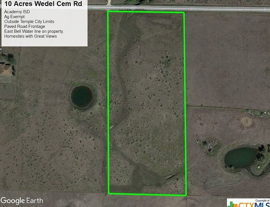 LOOKING FOR SOMETHING JUST A LITTLE OUT OF TOWN! Here's 10 acres on paved road frontage with a water line already in place. Ag exempt and located in the Academy ISD. Three sides are fenced for livestock. Nice flat homesites with a view for miles. This property can be subdivided into two 5 acre properties per restrictions after purchase. No manufactured, modular or container homes allowed. Plentiful grass for your horses or livestock. Peace, quiet and great sunsets will be right off your back porch.
