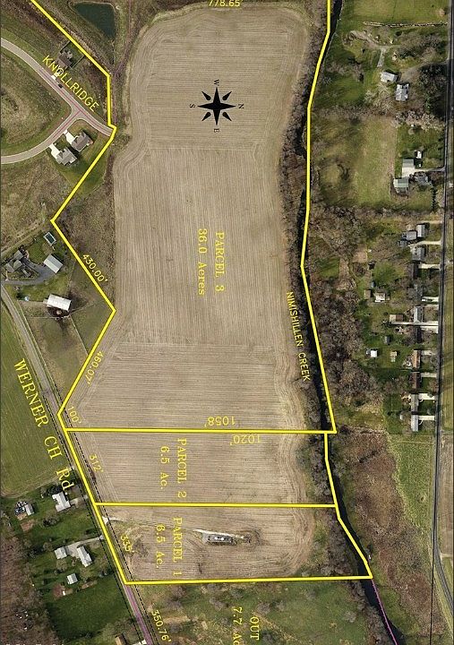 THIS IS PARCEL #3 - Attention Land Seekers – Exciting Opportunity! 49 Acres Vacant Land – To Be Sold in 3 Parcels - All Public Utilities Available - Development Potential – Nimishillen Creek Frontage – Zoned R1A - Plain Twp. – Stark County – Plain LSD - ABSOLUTE AUCTION, all sells to highest bidders on location: Saturday – September 17, 2016 – 10:30 AM - 49 acres gently rolling land (currently planted in corn). Land has road frontage on Werner Church Rd. Knollridge Ave. stubs into property. Nimishillen Creek borders the entire back of property. Land to be sold in the following parcels: Parcel #1: 6.5 acres, trees and creek at rear, 335 ft. frontage on Werner Church Rd., existing driveway. Parcel #2: 6.5 acres, trees and creek at rear, 312 ft. frontage on Werner Church Rd. Parcel #3: 36 acres, trees and creek at rear, 100 ft. frontage on Werner Church plus Knollridge Ave. stubs into property. All public utilities available including sewer with capacity for development. Note: Opportunity