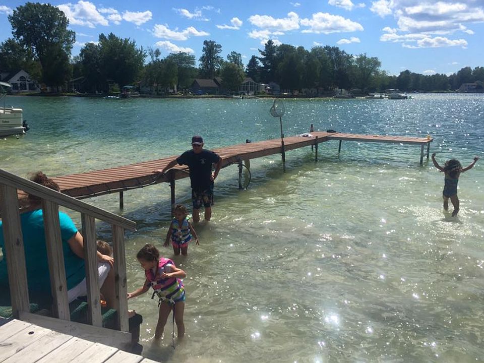 Lakefront beach: huge sandy gradual sandy entrance. Best play spot on the lake!! Would be a wonderful spot for a custom build (similar to others in the area that have just been built). This home is FOR SALE