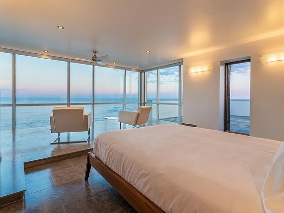Just 40 minutes to Halifax this spectacular and unique home is surrounded by the most astonishingly beautiful scenery where the coastal barrens give way to rugged granite cliffs, pounded by the Atlantic surf. Overlooking the Atlantic, this one of a kind contemporary residence is located on a private 2.7 acre estate that includes 550 ft of rugged oceanfront bordering 1800 acres of pristine Crown Land. This modern 6,790 sq ft masterpiece of concrete, steel, stone and glass offers breathtaking 360 degree views and was once a WWII observation tower strategically positioned to guard the coast and Halifax Harbour. Renowned designer Erla Laurie came upon the abandoned military installation and was inspired to make it her home. This iconic residence includes a main level open concept floor plan designed with entertaining in mind. The great room with its 20 walls of glass and soaring ceiling is the main focal point of the main level and provides access to the outdoor terraces and the enchanting, ocean view infinity pool. The dining room with its feature, marble wall and is perfect for more formal occasions, while the beautiful cherry wood and soapstone kitchen offers a more relaxed gathering space for friends and family around the oversized eat-in island. The main house includes a wonderful open, library/office area on the second floor and 3 bedrooms, including the sumptuous master suite with luxury spa ensuite, wet bar and private roof top deck with hot tub and wood burning fireplace. There are 2 more equally beautiful guest suites with ensuite bathrooms and a commercial elevator that links all the levels to the top floor roof deck. Accessible from the main house via walkways on 2 levels a separate, 2 storey guest house provides visitors with their own private space and has a fully equipped kitchen, sitting area and bedroom with ensuite. Portuguese limestone floors, multiple fireplaces and spacious outdoor living areas, culminate in sophisticated design with the feel of a comfortable family home and a harmonious balance between this impressive man-made structure and the natural beauty beyond its walls. Truly a unique property for those accustomed to first class living.