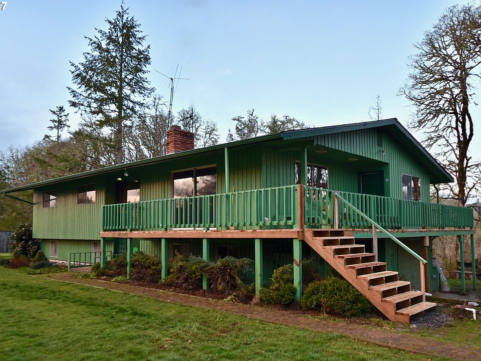 Great big country home on 16.82 ac. 5 bedroom, 2 bath home is a split level w/ daylight basement. Upstairs has vaulted ceilings, kitchen w/ informal & formal dining, living rm w/ fireplace, expansive deck, and views of acreage, stream, & hills. Recently painted inside & out. Acreage boosts lush garden area w/ fruit trees, animal barn, metal wood and tool storage buildings.