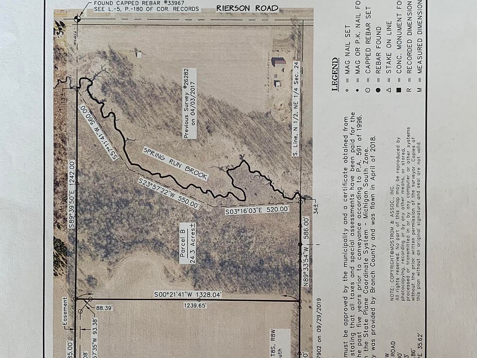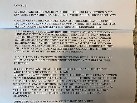 24.3 acres of mostly wooded acreage in Noble Township south of Bronson. Has a hunting blind and food plot on property. Runs along Spring Run Brook. Great location for hunting! Located on the south side of Whipple Road between house numbers 740 & 755.