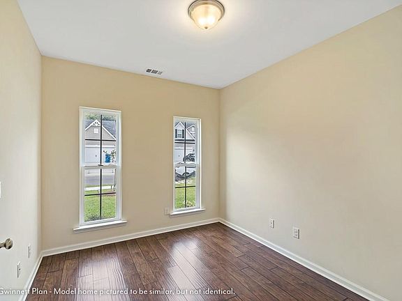 The grand features of the Gwinnett plan is part of our Georgian Collection and is a favorite of our larger sqft plans.. This two-story home's expansive floor plan consists of over 4,000 sqft of living space and includes 5 bedrooms, 3.5 baths, and a 2 car garage. From the two story foyer is a majestic double staircase. On one side of the foyer is found the study and opposite that is a gorgeous formal dining room that flows perfectly into the kitchen. This kitchen includes a large walk in pantry, a raised bar to easily seat 6, and counter space to accommodate the best of home chefs. The large breakfast area is also in this space. Arched walls and columns elegantly give open separation from the kitchen into the spacious great room. A wall of windows flank this great room and breakfast room allowing views to the rear yard and open patio areas. Tucked away from the kitchen area is found a powder room and a sizable bedroom with its own en-suite. Entering the upper gallery by either of the two staircases, the additional bedrooms, loft area, potential media room, laundry room, and the master suite will be found. The master suite includes three walk in closets, a very large sitting area, and the bath with double vanities, a 6' garden tub, and 5' shower. This master suite is far more than just a bedroom, it's is a true sanctuary of luxury. Need more space: Available 6th Bedroom