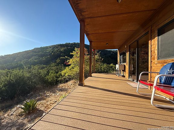 River access and views galore! Located on White Bluff Road in Medina, TX, this 14.83+/- acre property offers an off-grid lifestyle surrounded by the natural beauty of the Texas Hill Country. The property includes a two-story furnished cabin built in 2009 with approximately 1,344+/- sqft of living space. The cabin features four bedrooms, two bathrooms, a small sleeping loft, and a covered front porch overlooking the hillside. Interior details include yellow pine floors, tile countertops, and a wood-burning fireplace that enhances the cabin's rustic character. Built for self-sufficient living, the property operates off-grid with solar power, a backup generator, a rainwater catchment system with UV filtration, and propane utilities. The acreage has partial perimeter fencing and is well-suited for hunting, with abundant native wildlife. Owners also have access to a neighborhood river park along the Medina River, providing opportunities for fishing and swimming. The elevated setting offers long-range Hill Country views and a private, natural environment for recreation or relaxation. Combining privacy, functionality, and natural scenery, this property presents a unique opportunity for a sustainable Hill Country retreat. Owner financing may be available for qualified buyers. Schedule a private showing and come see what makes this one-of-a-kind retreat so special!