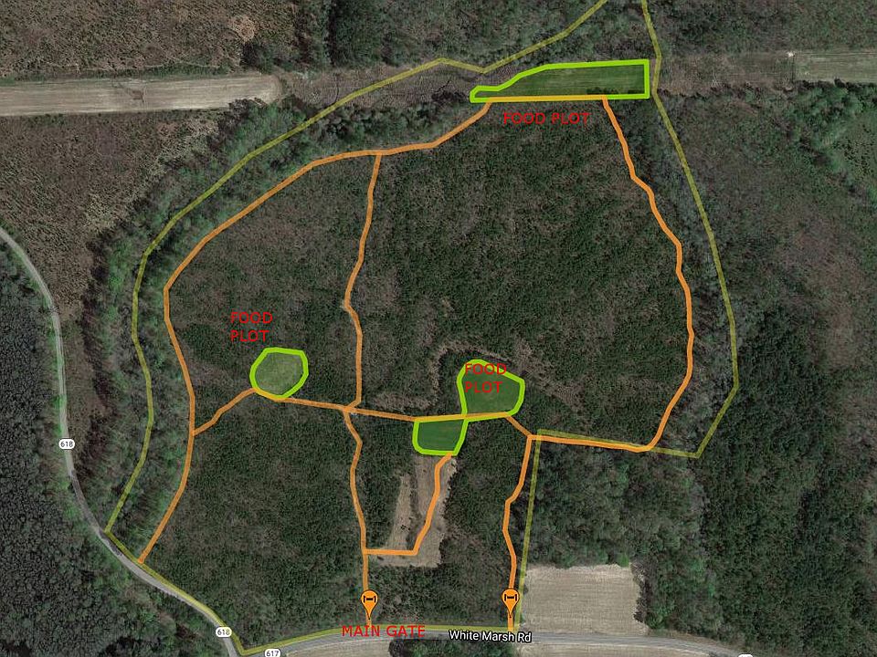 This exceptional farm located in Surry Co., one of Virginia's top trophy deer producing counties has it all. Big Bucks, large flocks of Wild Turkeys, the occasional Black Bear and all types of small game (squirrels, rabbits, bobwhite quail) and predators too. The farm is located in the southwestern tip of the county next to the Blackwater River just a stone's throw from the adjoining counties of Isle of Wight, Southampton, and Sussex in the Runnymeade community. The parcel contains a mixture of mostly 10-year-old pines and hardwoods. There is a 1.79-mile road system around the entire perimeter and through the middle of the property connecting several food plots, stand sites allowing the scent-conscious hunter stealthy access for any wind direction or condition. The parcel's location at the intersection of two roads (Sexton & Whitemarsh) and next to the river allows for this parcel to be secure as a still hunters paradise. Most of the adjoining landowners also practice still-hunting and trophy management. The current owner has never allowed for any bucks less than 18" wide to be harvested. There are numerous stands including a large shooting house already in place and a few fruit trees scattered through the property. Make this dream property yours today. The property is for sale by private owner. Check out the photo gallery to see some of the wildlife that calls this farm home and send an email requesting a password to see the maps that show layouts of the road system, food plots and a plat of the property.