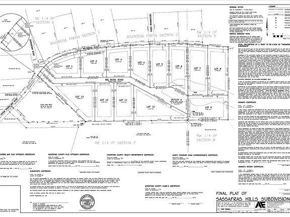 Woodford County IL 2 to 3.3 Acre Rural Subdivision Lots Germantown Hills IL Land For Sale: Sassafras Hills – Rural Subdivision featuring large lots with lake access. Sale Price = Lots 1 thru 4 – $85,000 each; Lots 5 & 6 – $90,000 each; Lots 7 thru 9 – $95,000 each; Lots 10 & 13 – $95,000 each; Lots 11 & 12 – $85,000 each Beautiful new rural subdivision featuring large lots with private lake access. The lots range in size from 2 acres to 3.3 acres and contain many large mature trees. Five of the lots will have lake frontage with the remainder of the lots having the ability to access the lake through the private roadway. These agriculturally zoned lots are near Germantown Hills and are located within the Riverview Grade School District and the Metamora High School District. Details regarding the maintenance of the private roadway and dam, the formation of the Homeowner’s Association, and the restrictive covenants for this subdivision are currently in process. Details will be posted as they become available. Legal Description PART OF THE SOUTH HALF OF THE SOUTHEAST QUARTER OF SECTION SIX (6) AND PART OF THE SOUTH HALF OF THE SOUTHWEST QUARTER OF SECTION FIVE (5), ALL IN TOWNSHIP TWENTY SEVEN (27) NORTH, RANGE THREE (3) WEST OF THE THIRD PRINCIPAL MERIDIAN, WOODFORD COUNTY, ILLINOIS PIN 08-06-400-023 & PIN 08-05-300-002.