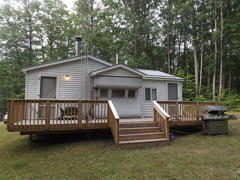 Great weekend getaway. 1 Bedroom trailer with addition, newer steel roof. Wooded, state land within walking distance. Beautiful 7x28 deck.