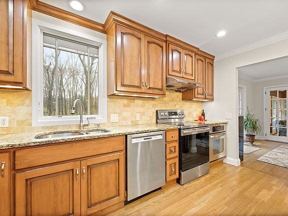 Beautiful, well maintained 4 bedrooms home on level 2 acres lot surrounded by mature trees in desirable Wilton Woods neighborhood. Enter and see elegant living room with wood burning fireplace and refinished hardwood floors. High quality kitchen with new stainless steel appliances and breakfast bar opens to lovely dining room and glass door to oversized deck overlooking a large private yard. Heated sunroom to enjoy the tranquility of your own sanctuary while being just moments away from everything Wilton has to offer. Comfortable family room/ office with built-ins adjacent with full bath and laundry room and French door to walk out to back yard. Upper level features generously sized bedrooms with hardwood floors throughout, primary bedroom with ensuite renovated bathroom and 3 additional bedrooms with beautifully redone off hallway double sink bathroom. Lower level with your own exercise room and partially unfinished area with mechanicals. In addition, this property offers 2 cars garage, shed, generator and fire pit. Located minutes away from Ridgefield and Wilton Town Centers, award winning schools, train and major highways. Don't miss the opportunity to make this charming house your home!