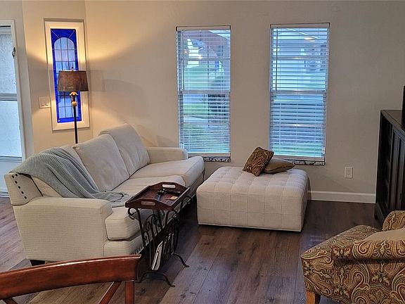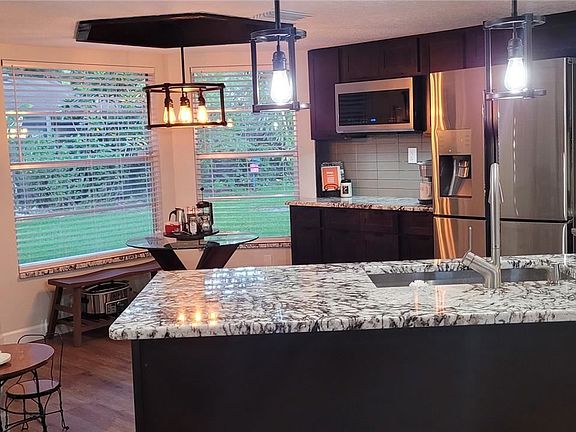 YES, LOCATION, LOCATION, LOCATION! This is very true as you will see once you visit this little gem of a neighborhood! One way in and one way out so there is no through traffic! Larger lots, trees, sidewalks, and a private clubhouse with a swimming POOL for residents to enjoy and very low HOA fees of only $330.00 annually & NO CDD fees! This home has been tastefully remodeled with the nicest finishes! No more popcorn ceilings, all new knockdown texture ceilings/ NEW ROOF OCT. 2017/ NEW COMPLETE HVAC & DUCTWORK 2019/ NEW WATER HEATER 2019 (both the HVAC & water heater are WIFI programable) NEW FLAT ROOF 2022/ NEW KITCHEN WITH GRANITE AND STAINLESS APPLIANCES (the current refrigerator & oven will be replaced with "like" appliances) Beautiful luxury vinyl plank flooring and high modern baseboards throughout the home/ the hall bathroom has been completely remodeled/ the master bathroom has been updated with exception of the shower stall. Every light fixture and the electrical outlet have been changed out and updated! There are a few items that will be finished within 2 weeks: painting the front of the house/painting the lanai/painting the garage ceiling/painting the 2nd bedroom & bathroom and putting the shelf back up in the laundry room. DON'T DELAY SEEING THIS INCREDIBLE PROPERTY! NO FENCES, BOATS, CAMPERS, OR COMMERCIAL VEHICLES.