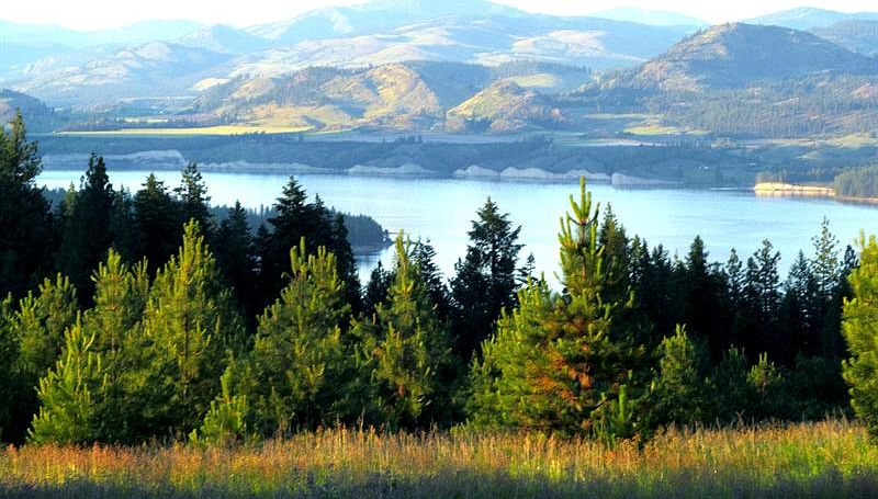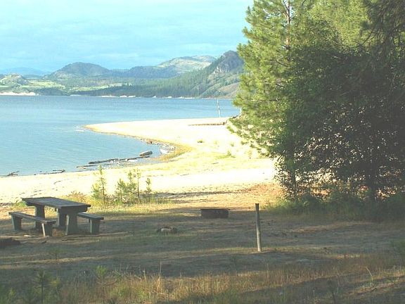 6.56 Acres overlooking Lake Roosevelt. Small camping cabin power and shared well. Access to Enterprise beach thru gated community