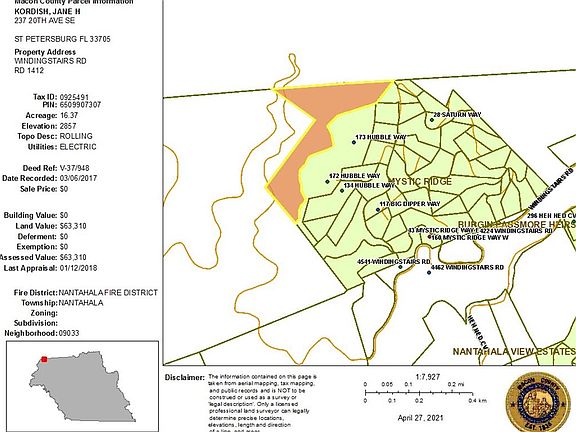 Where no man has gone before! Raw unrestricted land surrounded by United State Forest Services. Get lost on your own land. 4 parcels in 2 counties Swain & Macon county. 100+ ac, 16+ ac, 5ac, 1.59 lost land (find it and you can claim it) for a total of 123.719 acres.This is steep, sloping, and has flat ridge area on the top. This is a Treasure chest that you can buy and hunt, live, trade maybe to Forest Service for other lands? Who knows the riches that await you Tax value is at $633,310.00. It is an Estate Sale and seller has not seen land for over 30 years. There may be a ton of timber? Rushing creeks? Spring head? Paved roads? 3660 ft at top