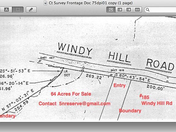 CONTACT : 5nreserve@gmail.com or PAT 860-558-8220 64 Acres at $167,300 That is $2614 PER ACRE Great hunting , hiking and camping in Hampton , CT . LOW TAXES. "Forest Use" assessment (2015 Taxes $229.43) Good dirt access road into 64 acres of mixed hardwood forest with gated entry on south side of Windy Hill Rd, Hampton, CT. Used for 30 years as family camping and hunting preserve. Dirt roads and trails lead to various elevated hunting/wildlife observation stands. Some areas of land bounded by streams and stone walls. Very Private. Surrounded by undeveloped land. Build your home . Enjoy the land for hunting, camping, horseback riding, recreation or as your own park. Get some friends together and buy your family / group campground and hunting camp. That's what we did 30 years ago. Enjoy large campfires, beverages and your own shooting range without the restrictions normally found at a campground. Areas already cleared for parking and camping. Stone campfire rings in place. Plenty of room to position your trailer, pop up and RV. CONTACT ME AT: 5nreserve@gmail.com or Pat at 860-558-8220