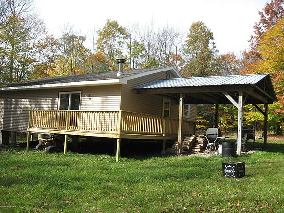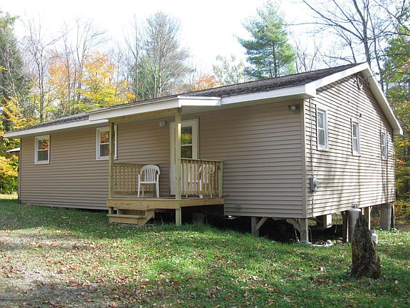 Spacious Hunting Cabin centered around 60 acres of woods.Drilled well,septic system,Replaced sidding,decks,roof,windows,electric and hot water heater.Cabin is insulated plus woodstove. Turn-key operation,bunk beds(sleeps 14)all furnishings are included.Abandoned road runs through the property.Land is flat and rolling.Woods are abundant with wildlife.Mineral rt's do not convey.