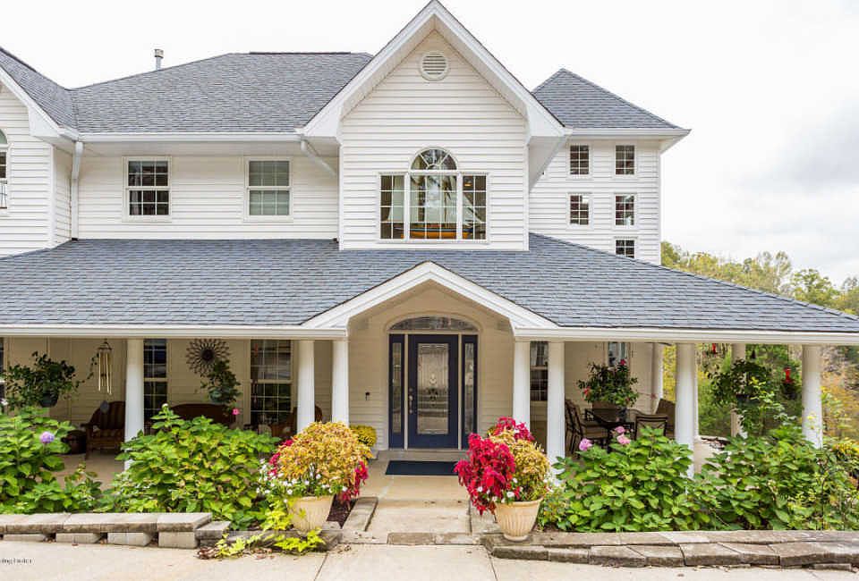 Gated golf course community nestled in the hills surrounding Doe Valley Lake just 20 miles south of Louisville KY - Exquisite water front custom home that was originally built for the builder's personal use! As you enter the foyer you're immediately greeted with Italian marble floors and a grand staircase. Through the arched entry into the open Great Room you'll find like new Brazilian hardwood floors, 28 foot ceiling, gas fireplace and access to the rear deck. The eat-in kitchen offers Blue Pearl granite counters with breakfast island, custom built cabinetry, butler's pantry (with space for a small office) upgraded stainless appliances, Kitchen Aid gas cooktop, double oven, Samsung side by side refrigerator, dishwasher & trash compactor. The formal dining room is flanked with columns & surrounded in custom beadboard wainscoting. Savor the touches found in the first floor Master En Suite: custom beadboard wainscoting, triple tray ceiling, Brazilian cherry hardwood floors, private access to the rear deck, custom ceramic tile, walk-in shower, whirlpool tub, double marble vanity, walk in closet with stackable washer/dryer combo. Upstairs relish in the vast lighting pouring in to the cat walk from the abundant windows, two private bedrooms each with their own full bathrooms (one bedroom offers access to the private rear upper deck), an office on the opposite side of the home provides beadboard wainscoting, ample windows and access to the rear upper deck. The lower level contains a tile floored billiards room, custom theatre room, an exercise room, full bathroom and an additional bedroom (currently used as storage) with it's own rear access. Outside you'll discover the detached Amish built 1 car garage, a car port, private dock, Koi pond, gorgeous landscaping, fountain and incredible hardscaping. This is the perfect getaway home for the Buyer who travels: gated community, home has top grade security with remote access and electronic entry, easy to turn off utilities and a large lockable mailbox. Boundaries are conveniently marked on this double lot. And just when you thought it couldn't get any better: THIS HOME IS BEING OFFERED COMPLETELY FURNISHED! Yep, all the outdoor items/vehicles remain too! This home is priced to sell and will not last long! Only serious buyers please. An inventory of items included in the home will be provided by agent. Proof of funds required for all showings. Inquire about the assumable VA loan. Call today to schedule your private showing.
