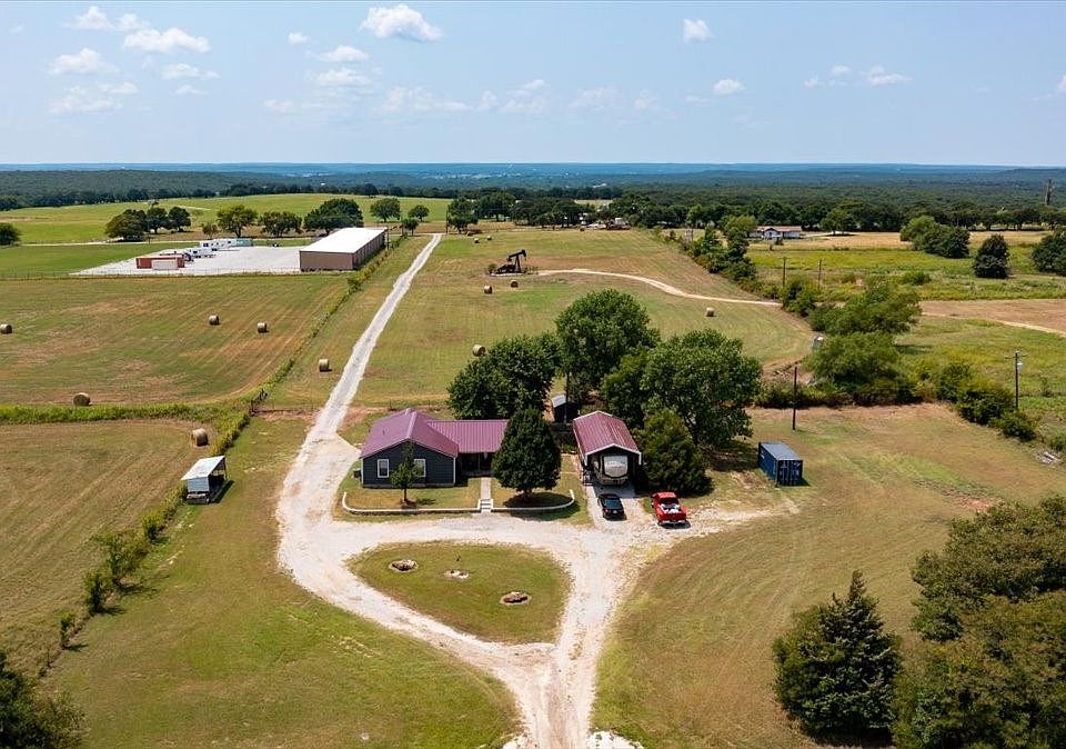 Have The Best of Both! This home is just outside the city limits of Bowie and within an hour of Fort Worth for an easy commute! 3 BR, 2 BA siding home with new metal roof sits on approx. 7.5 acres. Bonus room could be used as small BR, playroom, office or sewing room. Open kitchen with bar boasts granite countertops, pantry, 60-40 stainless steel sink & lots of storage; large laundry room; gas fireplace in living room; 16x42 RV shed or could be used as a carport; metal storage shed with concrete floor; carport; lawn mower shed; all electric HVAC system is 3-4 yrs. old; wood & carpet flooring throughout. Good storage throughout. Property is fenced, has a pond, Pecan & other scattered trees. Pics coming soon.