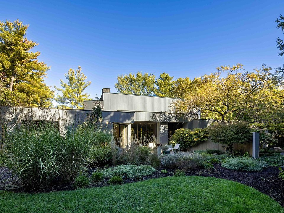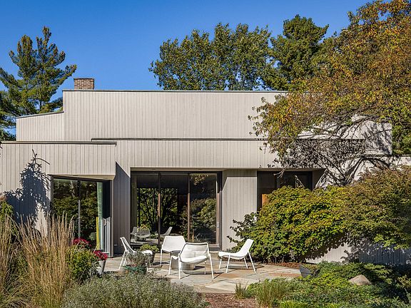 Beautifully designed ranch by renowned architect Tony Grunsfeld, perfectly situated on a private street and a spacious half-acre lot. This remarkable 4+bedroom, 4.1-bath home combines timeless architecture with thoughtful modern updates, offering comfortable, elegant living in one of the North Shore's most sought-after locations. The newly updated kitchen is the heart of the home, featuring all the latest amenities, a huge island, and abundant cabinetry. Doors open to a lovely patio, ideal for outdoor dining, barbecues, and quiet relaxation. The large living, dining, and family rooms flow seamlessly together, creating a perfect setting for both casual gatherings and formal entertaining. A newly finished second floor has been transformed into a private retreat with an oversized bedroom, full bath, and sitting or exercise area-perfect for guests, a teen suite, or quiet relaxation. The large mudroom/laundry room adds convenience and organization, with space for everyday essentials. The expansive primary suite is a true sanctuary, featuring two full bathrooms and large walk-in closets-a rare and luxurious design detail that enhances both comfort and privacy. Included in the suite is a large office with a private patio, can also be a bedroom. Natural light pours through expansive windows, highlighting the serene, landscaped surroundings and emphasizing the signature Grunsfeld connection between architecture and nature. This is a rare opportunity to own a Tony Grunsfeld , blending sophistication, privacy, and the ease of single-level living-all in a beautiful, peaceful setting.