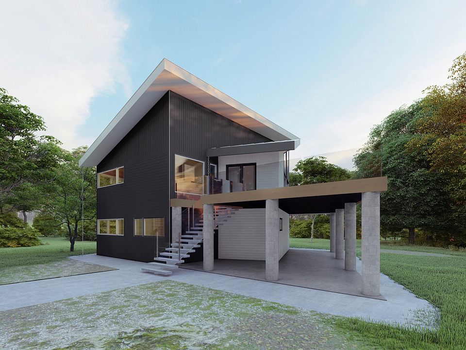 Delivered by December 2021. Located on 9 secluded acres of pristine land just two miles from the center of woodstock: The Greyling's free-flowing contemporary design blends together perfect amounts of style, functionality, and character. The soaring roof-line going up and out from the kitchen ends with floor-to-ceiling windows. The almost 800 square feet of open space on the first level with hardwood floors is light-filled and primed for entertainment. The kitchen fit for a master chef features marble countertops, a breakfast bar, professional-grade appliances, a vented hood, and forest views. A floating fireplace suspended from the ceiling offers warmth and ambiance. The corner guest bedroom has an en suite bath with a picture window. Powder room for guests. Foyer with closet space. Just outside you've got almost 1,000 square feet of elevated hardwood deck space. The lower level offers three additional bedrooms and a laundry room. The master bedroom with corner windows is over 400 square feet and features a walk-in closet and en suite bath with his-and-her vanity, solid surface soaking tub, and separate water closet. A shared bath for the two additional bedrooms is perfectly situated. Water is supplied with a constant-pressure well pump, an on-demand hot water heater supplies endless hot water. A Heat Recovery Ventilator brings fresh air into the entire house hourly. An alarm with central station fire and multiple keypad locations provide peace of mind. Listen to music throughout with the Bluetooth whole-house sound system. A backup whole-house generator keeps your power on when the grid turns off. Options include a pool, solar panel array, rainwater collection, landscaping, and more.