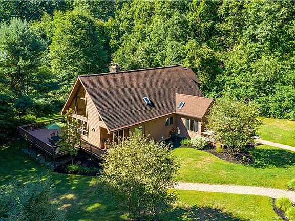Welcome home to this stunning estate, tucked away on a private, secluded 6-acre lot! This home is truly one-of-a-kind! Step inside and discover a gorgeous great room with soaring cathedral ceilings overhead, 2-story windows welcoming in loads of natural light, and a magnificent stone fireplace as the room's focal point. Beautifully maintained hardwood flooring all throughout the main level and 2nd floor. Entertaining is easy with a large kitchen with separate eating space and new stainless steel appliances. Plus a large dining room with pellet stove to keep your guests cozy and comfortable. This home offers ample living space with an additional family room featuring wall-to-wall windows and sliders leading out to a fabulous wrap-around deck. Easily accommodate a crowd whether you're hosting an indoor party or outdoor cookout! Main floor also includes 2 bedrooms and a full bath. Enjoy the entire 2nd floor all to yourself with a large master bedroom with sitting room and an oversized 2nd floor full bath! It's the perfect retreat at the end of a long day. Plus, a full basement for ample storage. Stay comfortable all year long with new fuel efficient mini-splits in most rooms! New hydro water heater and new well tank with updated plumbing. This home is also equipped with a 3-car garage and large storage shed - you will never run out of parking space or work space! Don't miss this one - tour today!