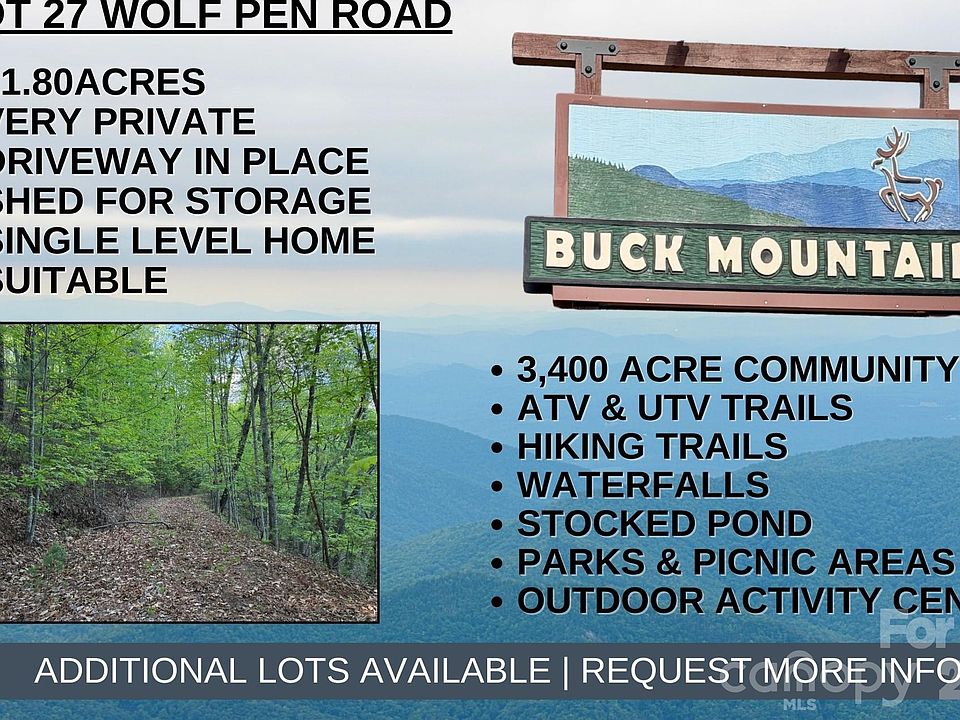 Looking to escape the hustle & bustle of daily life? This 11.8 acre tract offers tranquility, privacy & seclusion. Conveniently located in 3,400 acre Buck Mountain...ONLY GATED ATV COMMUNITY in Wilkes County. Lots of this size are a RARE FIND in Buck Mtn! Easily accessible by existing driveway. Multiple building site options. Select the perfect spot for your weekend getaway or rental property. Long & short-term rentals allowed. FIBER OPTIC available. Near Outdoor Activity Center w/pavilion, fire pit, picnic tables, bathrooms, amphitheater for live music, community gatherings & more! Buck Mountain is only 1 hr from Winston & 1 hr 40 min from Charlotte. Centrally located 35 min from Boone, West Jefferson & Wilkesboro. Close to BLUE RIDGE PKWY, ASU, shopping, dining, golf, mtn biking, fishing & skiing. Buck Mtn offers miles of Trails, Parks, Fishing Pond, Waterfalls, Pavilions, Community Ctr, Helipad, & more! 1,400 SF min. NO TINY HOMES. NO MOBILE HOMES. NO CAMPING. NO SELLER FINANCING.