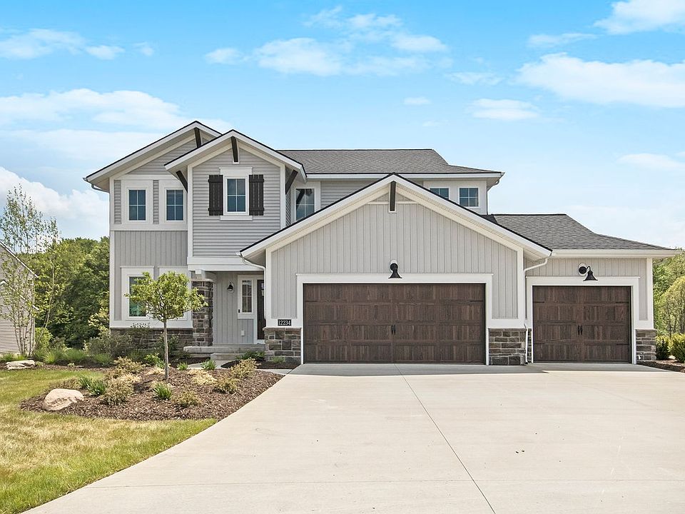 Buildable home Plan - Photos are Representational Welcome home to the Newport.. A short entryway leads from the pillared porch into your Newport home. The flex room, which is immediately adjacent to the entry hall, offers the opportunity to create a formal sitting or entertainment space. The spacious family room includes a wall of bright windows, a gas fireplace, and the opportunity to add a generous 190 square foot sunroom and upgrade to a two-way fireplace. From the family room, the kitchen and dining room form one open space. The kitchen includes a large walk-in pantry, an island, and plenty of counter and cupboard space. Off the kitchen the mudroom leads to the main level half bath and the two or three-car garage. From the Newport's front entry, a stairway leads to the upper level. The upstairs bedroom has an large owner-suite bedroom and walk-in closet, plus a bathroom with double sink, soaking tub, and step-in shower with optional ceramic tile. The upper level also incorporates the upstairs laundry room with optional folding counter and laundry sink, another full bath with optional double bowl sink, and three more bedrooms with closet space.The Newport also has a lower level, accessible from the mudroom. This space can be finished to suit your needs. If you select to build out the lower level, it can include your choice of additional living space, full or half bath, and additional bedrooms if your home site allows.Love this home? Please note that this is a ready