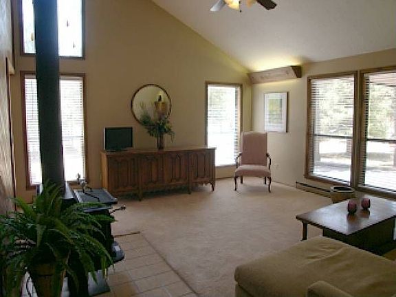 This is a single level 3 bedroom/2 bath home with a sunroom off of the kitchen. The kitchen has all major appliances. The master bedroom has a queen bed and the second bedroom has a twin bed. There is a separate room off the living room. The large garage is attached by a breezeway. This home is on a level corner lot with views of the golf course. You are a stones throw from Angel Fire Resort's beautiful country club. There is a spacious deck in the front of the home. The paved driveway allows for easy year round access.