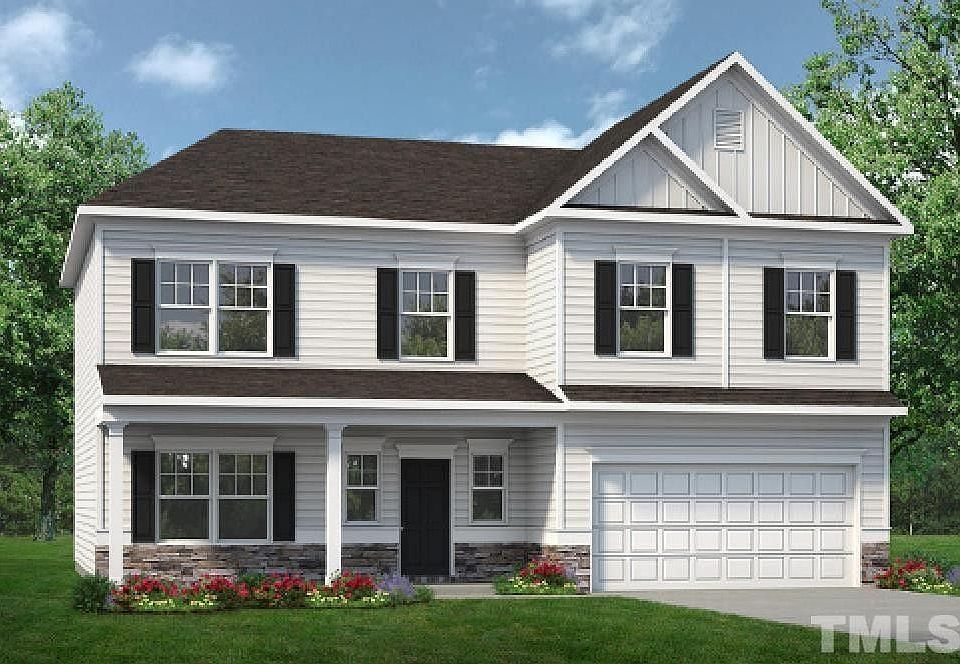 Smith Douglas presents The Morgan plan at Duncans Crossing.. A welcoming, long front porch and foyer entry greet you home. This dynamic home design has a flowing and functional first floor that includes generous counter space and a breakfast nook with an over-sized walk-in pantry and a separate mud room area to keep the clutter away. A spacious second floor accommodates the luxurious owner's suite with very large walk-in closets plus three secondary bedrooms, a convenient laundry room and loft at the top of the landing for a desk or play space. Finishings include granite countertops and stainless steel appliances in the kitchen, dual bowl vanity and large shower in the master bath, and hard surface flooring in the common areas. Located just minutes from downtown Lillington. Move-in ready January 2023! Photos of are representational only.