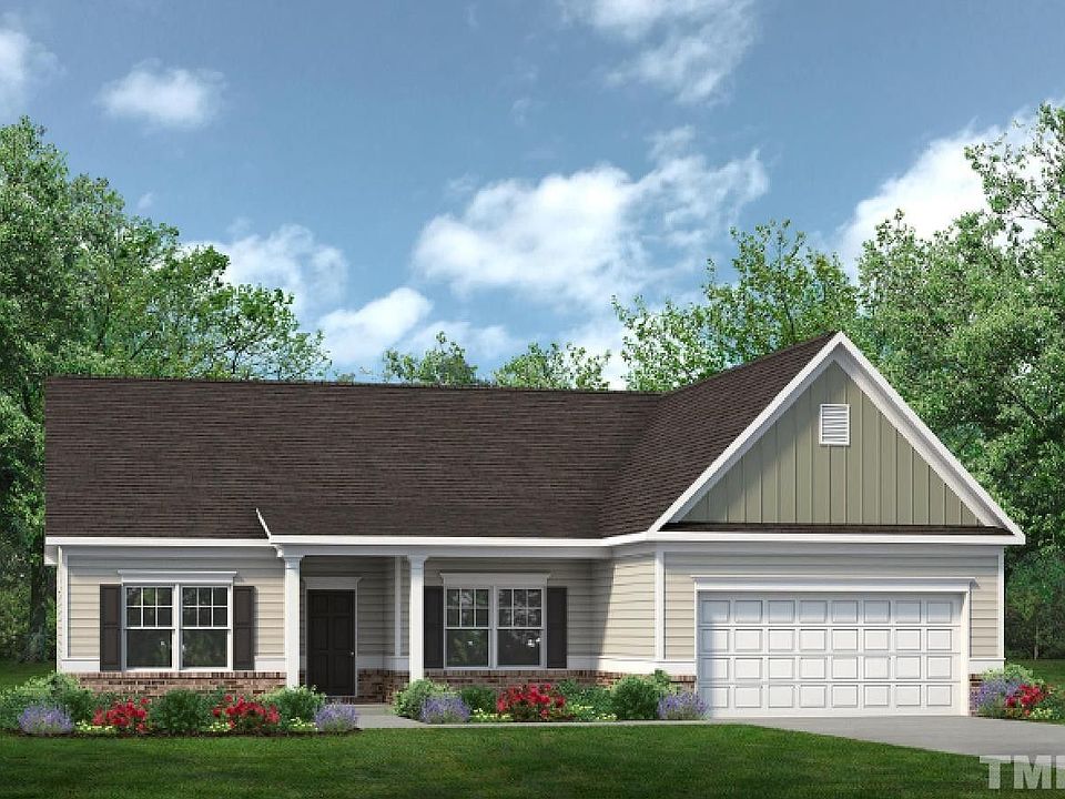 Smith Douglas presents The Vinings plan at Duncans Crossing.. Featuring beautiful curb appeal and a welcoming covered front entry. Inside, you'll find a large dining area and open family room with kitchen breakfast bar. A split bedroom layout allows privacy and separation between the comfortable owner's suite with generous walk-in closet and the secondary bedrooms. Features include granite countertops and stainless steel appliances in the kitchen, wainscotting in the dining and foyer, and hard surface flooring in the common areas. Located just minutes from downtown Lillington. Move-in ready January 2023! Photos of are representational only.
