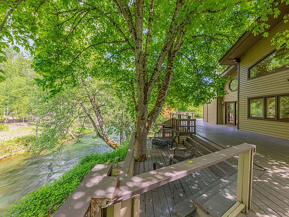 Prime Applegate River property, close to Murphy, with your own part of an island. This property has 2 tax lots making 4.66 acres. Irrigated and EFU Zoned. The grounds are flat and usable. This large home has an amazing deck so you can enjoy the river and entertain, there is also a ramp that goes up to the back deck. Inside the 3016 sq. ft. home is a massive, vaulted ceiling, plenty of open spaces, 4 bedrooms and a loft, and an amazing Master bedroom & bathroom. The garage is a 4-car garage that has doors at both ends so you can fully drive thru. There are also 3 RV spots with electric and water, and an outdoor shed. You can use your imagination with this as it has great potential for farming projects, homesteading, beautiful gardens, etc. Electrical upgrades have been implemented to support industrial or farming activities. Buyer to do their own due diligence on all aspects of the property.