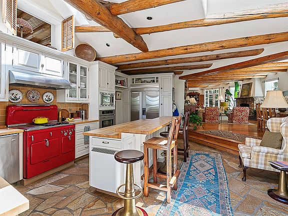 Comfortably tucked beneath the towering El Salto Mountain, sits this special 5.25 acre estate alongside the Arroyo Seco stream. This green oasis is defined by water, tall trees, birdsong and woodland gardens, by clear light, forever views and cool, starry nights. From its origins in the early 1970's, generously expanded over several decades, the home is built in harmony with the land. Each level flows naturally from the last, echoing the cascading waters just outside, with terraces, nooks, and rooms unfolding like the curves of the Creek itself. Both informal and refined, the house feels completely welcoming and comfortable. Gorgeous Idaho quartzite flagstone moves seamlessly from the broad front portal draped with Wisteria into the kitchen. The principal living space has a dreamy kitchen with a fantastic 1954 red enamel Chambers stove, a wonderful creek-side sitting area, a living room with wide plank reclaimed heart pine floors, a dry-stack stone fireplace, a library nook, a dining area, and three sets of French doors leading out onto a wrap-around patio that follows the banks of the winding creek. Salvaged and repurposed cypress shutters from New Orleans became beautiful wainscot paneling and doors. The home is anchored by a spectacular second story glass sunroom, made and installed by Pennsylvania Mennonite and Amish craftsmen from Renaissance Conservatories. The magical room with a warm quartzite floor is bathed in natural light that invites the outdoors in- perfect for morning coffee, quiet reflection, reading, writing, or entertaining under the stars. From here, a short rise of stairs leads to a landing off of which radiate two large, private suites. The western facing suite has a cozy sitting area with a large fireplace and a patio overlooking the stream and endless views to the Rio Grande Gorge and beyond. The corresponding suite is bathed in beautiful natural light from the large windows, vaulted ceilings and skylights. It feels like a cozy nest tucked into the treed canopy surrounding it. The third bedroom suite is can be accessed from the main living level or via a private door from the gardens. A delightful guesthouse with a complete kitchen sits at the base of a grassy lawn. Under the same roof, yet with it's own entrances from the lawn or garage is an additional light-filled room currently used as a home gym/office, and has a half bathroom. Versatile spaces amongst a verdant landscape. The stream brings the music of water to your daily rhythms. In the evening a cool breeze comes down the creek, and with it the gift of sleeping under a light blanket...windows wide open, stream trickling along. Natural springs feed native plants and perennials that bloom spring and summer. Golden Aspens shimmer and quake in the fall. Over 60 varieties of flowering trees, shrub sand perennials make for a true botanical delight. This is northern New Mexico at its most magical. Simply stroll out the door to hike and bike. No bike racks and drives to a trailhead necessary. Contiguous with quiet Taos Pueblo lands. Hiking trails lead to the El Salto waterfall and Carson National Forest. It's an easy 12 mile/20 minute drive to Taos Ski Valley. The location is secluded, yet sneaky-convenient. Meticulously maintained by one Owner for over 50 years, this is the first opportunity for another lucky soul to call this Home. This one-of-a-kind mountain sanctuary blends privacy, luxury and natural beauty in a way that simply can't be replicated. It is a truly special spot- Private Luxury at the Edge of Wild.