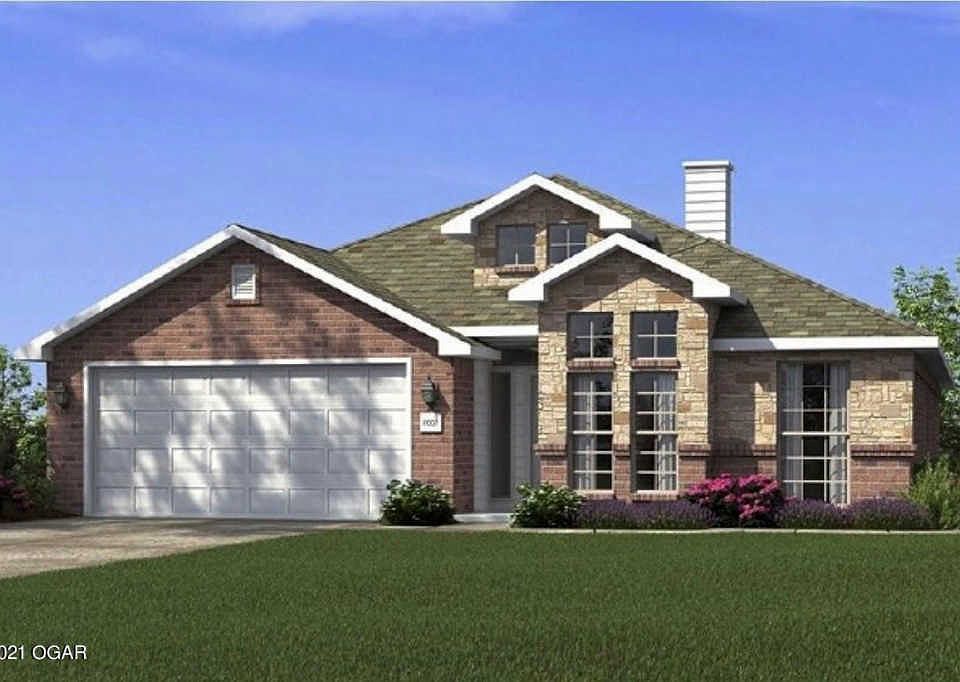Relish the complementary beauty of brick and stone with the curbside appeal of this gorgeous Oronogo new construction home! With over 1750 square feet of living space and 10-foot ceilings, this 3 bedroom, 2 bathroom home offers a great open floor design, perfect for any entertainer! An entryway leads into a spacious living area, with fireplace. Granite counters, custom cabinets, and glazed porcelain tile flooring throughout. The kitchen plays host to an island, recessed lighting, walk-in pantry, and entrance to both the dining and utility rooms. A covered back patio and an attached 2-car garage make this home a must-see!