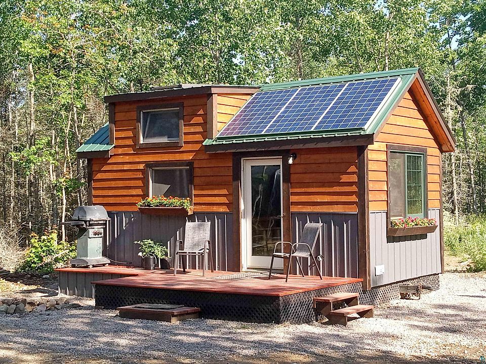 Off the Grid Tiny Cabin on 10 acres of land just 5 miles east of Ely. This 20 x 10 cabin with 320 square feet is 50% upcycled and has a 900 watt solar system. The property abuts county land to the north, Federal land to the south and has a mix of maple, birch, aspen and pine. There is a hoop garage along the driveway for storage and there is power at the south edge of the property.