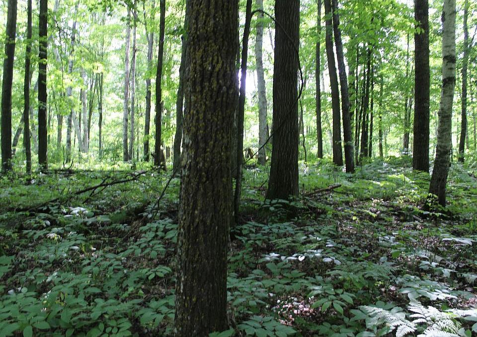 The property has a mix of Aspen, Ash, Balsam, Birch, Elm and Maple. It also has a lot of Red Oak, providing natural food for the local whitetails. The trees on the property are, in most areas, big mature trees. This could be a potential source for income from a selective cutting on the property - perhaps leaving a few roads or trails, and developing a few good sized food plots.