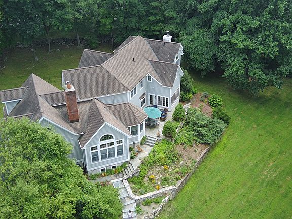 Inside, this bright, open home showcases real wood floors throughout and an expansive floor plan ideal for entertaining. The heart of the home is a beautifully appointed farmhouse kitchen with a handcrafted nine-foot cherry island, granite countertops, and stainless-steel appliances flowing effortlessly into a magnificent great room with a stone fireplace. Adjacent spaces include a sunroom and a private den with its own fireplace, perfect for quiet reflection or remote work.